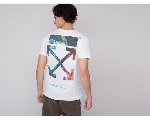 Молодежная футболка Off-White отлично подойдет для использования в жаркую погоду. Материал, из которого она изготовлена, отлично пропускает лишнее тепло. За счёт строения и коротких рукавов создаётся прямой силуэт. Основные дизайнерские элементы находятся на спине. Это большой цветной принт с символикой бренда, выделяющийся контрастным цветом и надпись Off-White. Швы не вызывают дискомфорта при носке.
